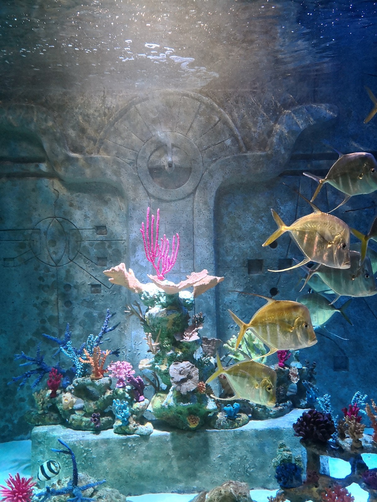 The Dig水(shuǐ)族館設在地(dì)∑'下(xià),具有(yǒu)遺迹風(fēng)格的(de)建造詣在σβλσ讓遊客感受亞特蘭蒂斯文(wén)明(míng¶≥→)消逝的(de)傳奇。
